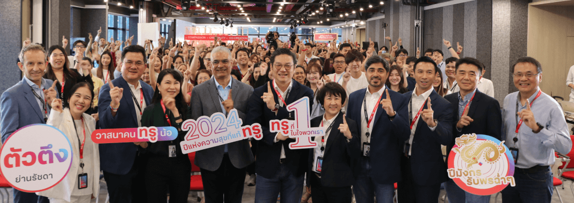 เมื่อคุณเข้าร่วมกับ ทรู คอร์ปอเรชั่น คุณจะได้พบกับวัฒนธรรมที่ส่งเสริมให้พนักงานทุกคนมีชีวิตชีวาซึ่งครอบคลุมไปถึงการเติบโตในชีวิตการทำงาน เราเสริมสร้างศักยภาพของพนักงานด้วยการส่งเสริมวัฒนธรรมแห่งการเรียนรู้ โดยในปี 2023 เราได้มีการจัดฝึกอบรมมากกว่า 226 หลักสูตร ผู้นำมากกว่า 400 คน เข้าร่วมหลักสูตรความเป็นผู้นำ เพื่อให้มั่นใจว่าพนักงานของเราได้รับการพัฒนาอย่างเต็มที่ ทั้งในด้านส่วนบุคคลและวิชาชีพ นอกจากนี้เพื่อให้ได้มาซึ่งนวัตกรรมใหม่ ๆ เราไม่ได้เพียงแต่ใช้ข้อมูลที่ได้มาขับเคลื่อนเพียงอย่างเดียวเท่านั้น เรายังส่งเสริมวัฒนธรรมในการกล้าคิด กล้าทำ กล้าแสดงออกอย่างสร้างสรรค์ ให้เกิดขึ้นภายในองค์กร เราสนับสนุนความหลากหลาย ความเท่าเทียม ความเสมอภาค และความเป็นอันหนึ่งอันเดียวกัน ทำให้สถานที่ทำงานเป็นพื้นที่แห่งการรับฟัง และพนักงานทุกคนรู้สึกมีคุณค่าเมื่ออยู่ในสถานที่แห่งนี้