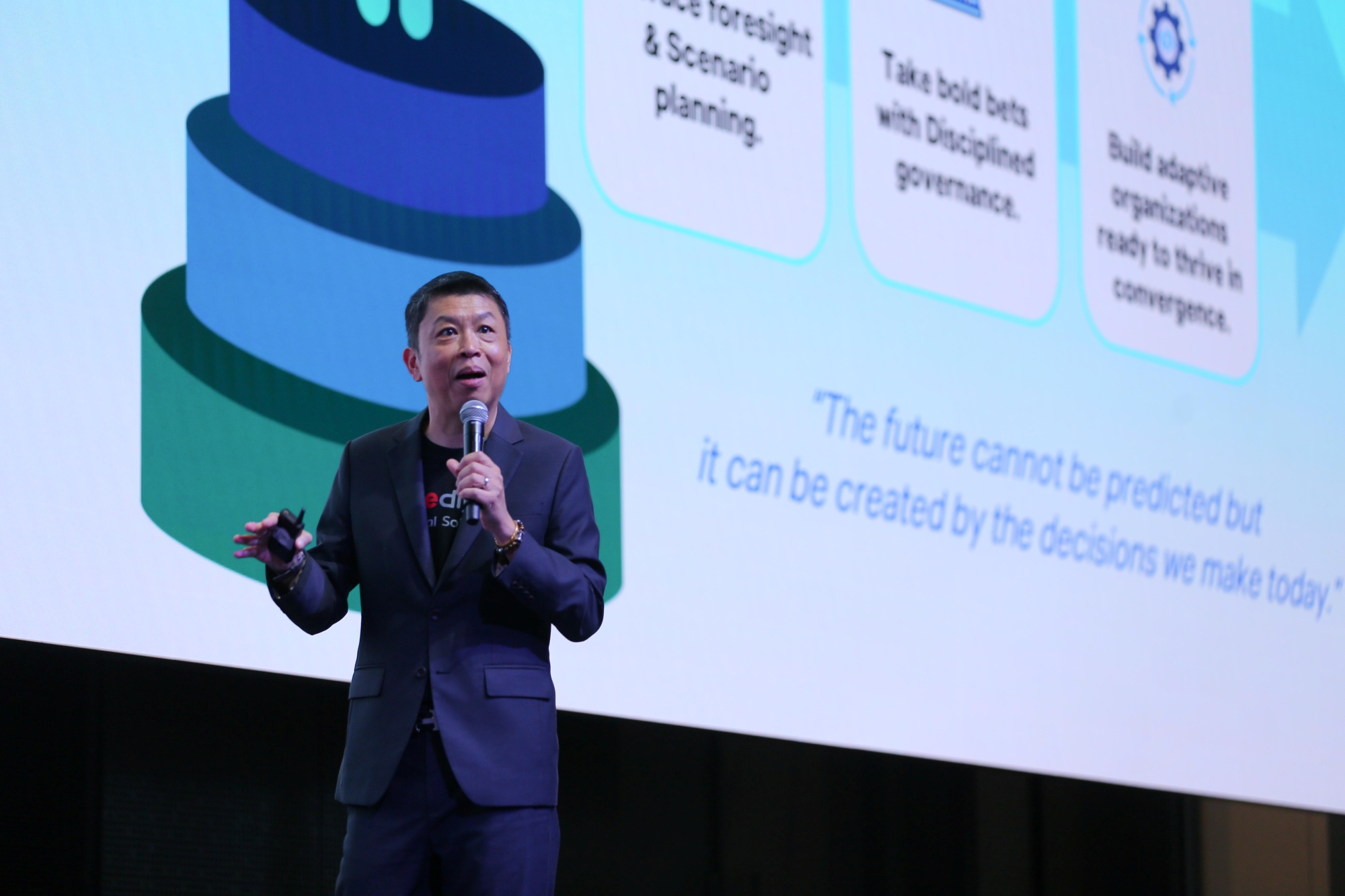 กรุงเทพฯ 26 กันยายน 2568-คุณเอกราช ปัญจวีณิน หัวหน้าคณะผู้บริหารด้านดิจิทัล บมจ.ทรูคอร์ปอเรชั่น ได้เผยวิสัยทัศน์บนเวทีเสวนา “Digital & AI Intelligence Unleashed” ในงาน CP Innovation Exposition and Symposium 2025 ซึ่งจัดขึ้นโดยเครือเจริญโภคภัณฑ์ ภายใต้แนวคิด “นวัตกรรมสร้างอนาคตเพื่อวันพรุ่งนี้ที่ดีกว่า – Innovate the Future for a Better Tomorrow” โดยคุณเอกราชได้เน้นย้ำถึงศักยภาพอันมหาศาลของเทคโนโลยีในการเปลี่ยนแปลงอุตสาหกรรมต่างๆ ทั่วโลก ความรวดเร็วของคลื่นความเปลี่ยนแปลงจากนวัตกรรม เทคโนโลยีที่จะกำหนดทิศทางของโลกในทศวรรษหน้า และกลยุทธ์ที่จะช่วยให้องค์กรสามารถก้าวเดินสู่ความสำเร็จได้